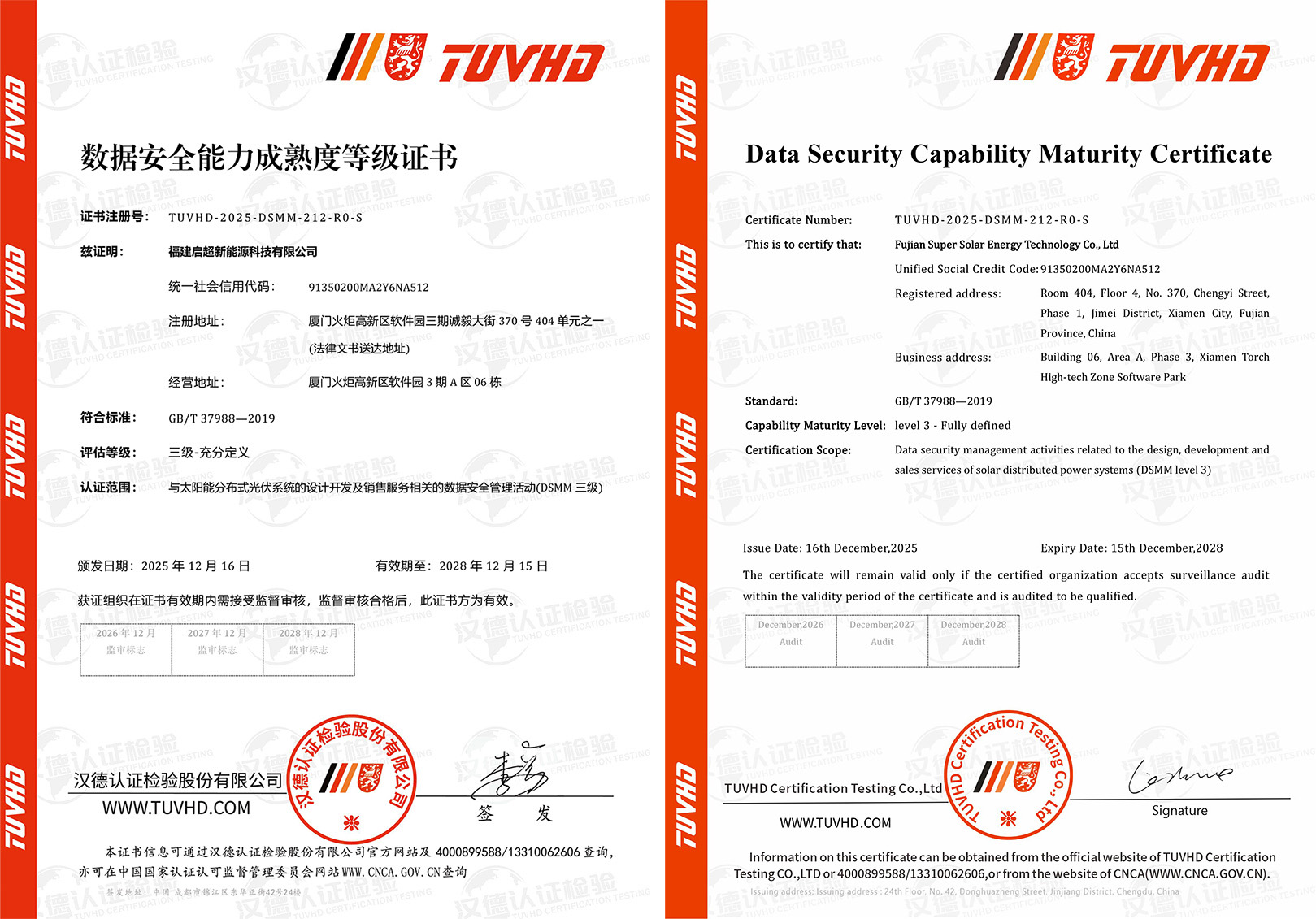 通过汉德认证的独立、客观审核,确认了启超新能源科技在数据安全领域已建立起系统化的管理能力,主要体现在: